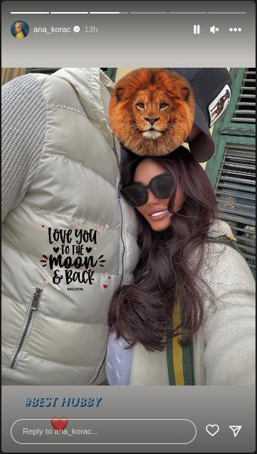 – Volim te do mjeseca i nazad! Najbolji muž – napisala je Ana Korać o njemu ukrasivši fotografiju emotikonom srca, ali i zalijepivši stiker lava preko suprugovog lica.